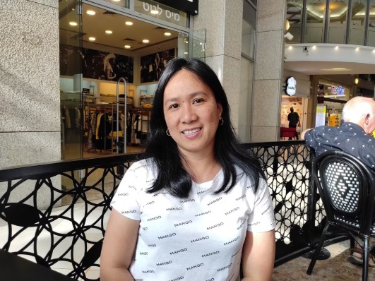 Gretchen (31), a single woman who has been in Israel for two and a half years, compares the cost of living between the countries. "The salaries are higher but the cost of living is so expensive. I go to the grocery store and see the prices compared to the Philippines, the restaurants, the mall. The prices are too high. And the books too, I love to read and they are really expensive here." The last book she read was 'A Story of Love and Darkness' by Amos Oz. In addition to the cost of living, she states that people in Israel are more open minded ."